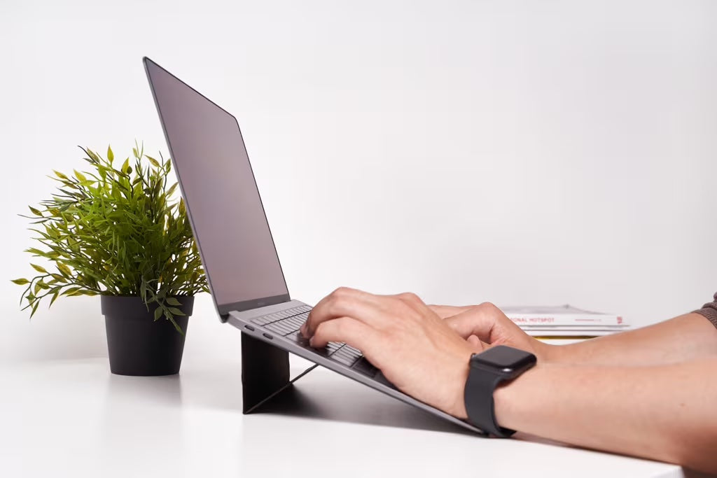 > Elevates your MacBook to ergonomic position (7 cm) and improves hand, head comfort